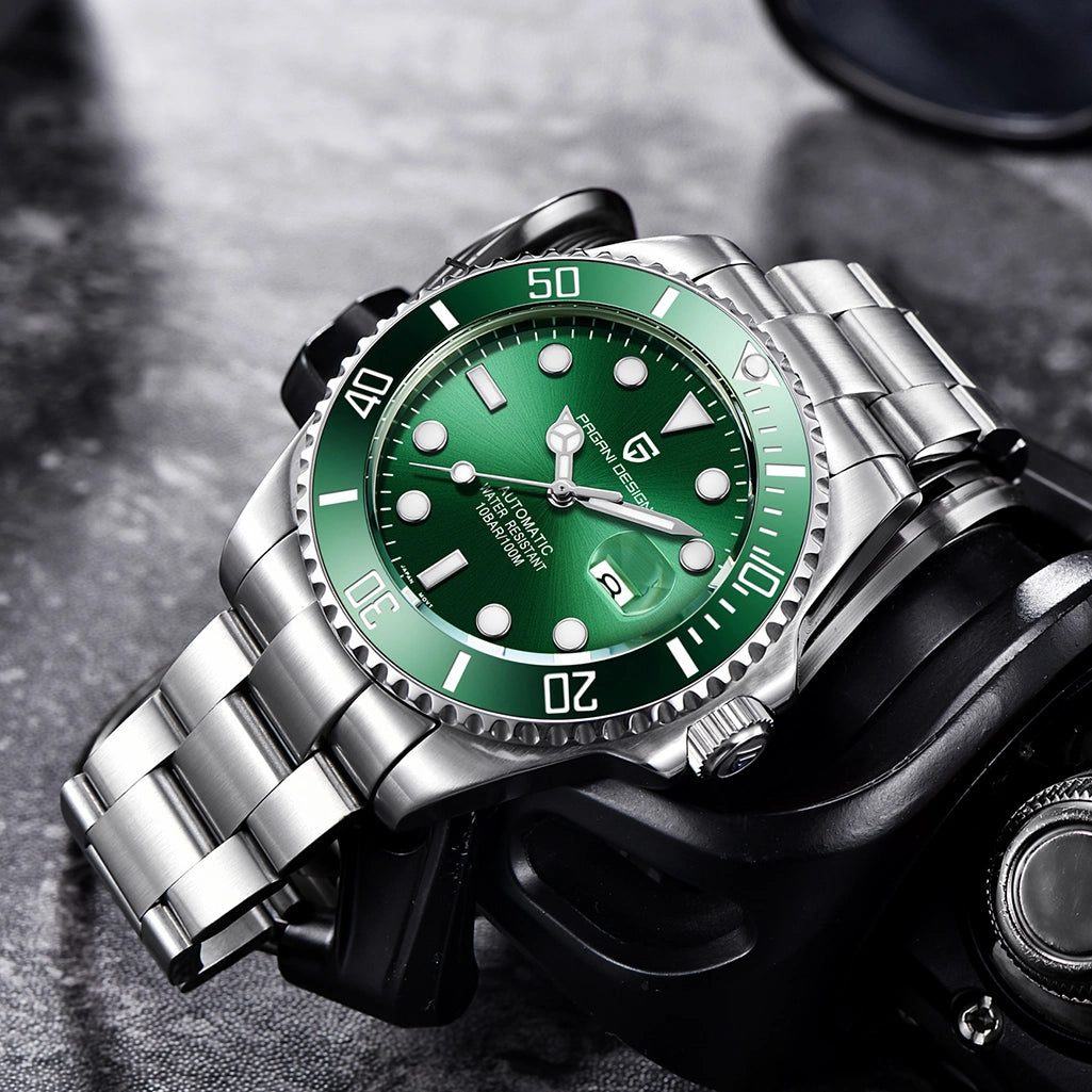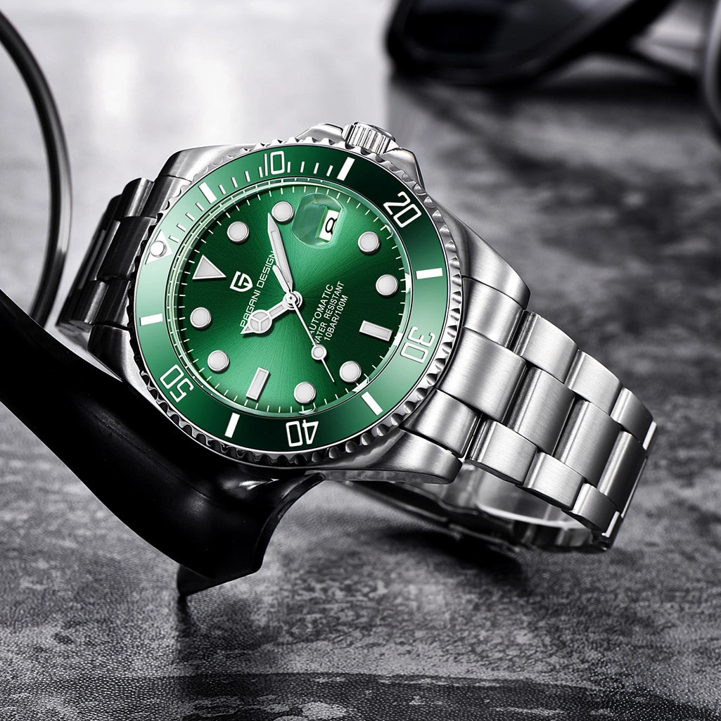 Gjør et statement med denne iøynefallende herreklokken i grønn farge. Utstyrt med Seiko NH35 urverk og et robust design, er dette klokken for deg som ønsker å skille deg ut.