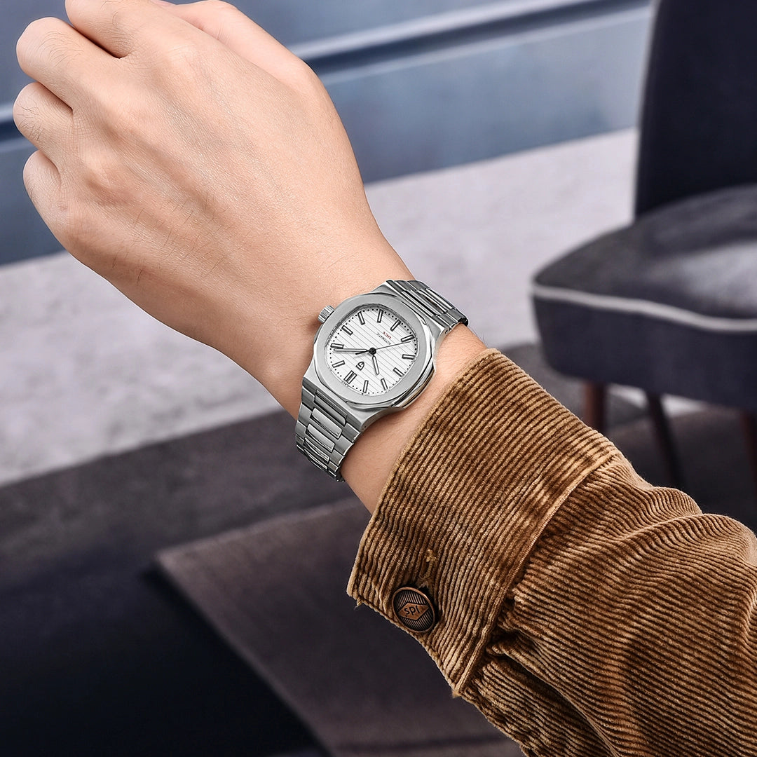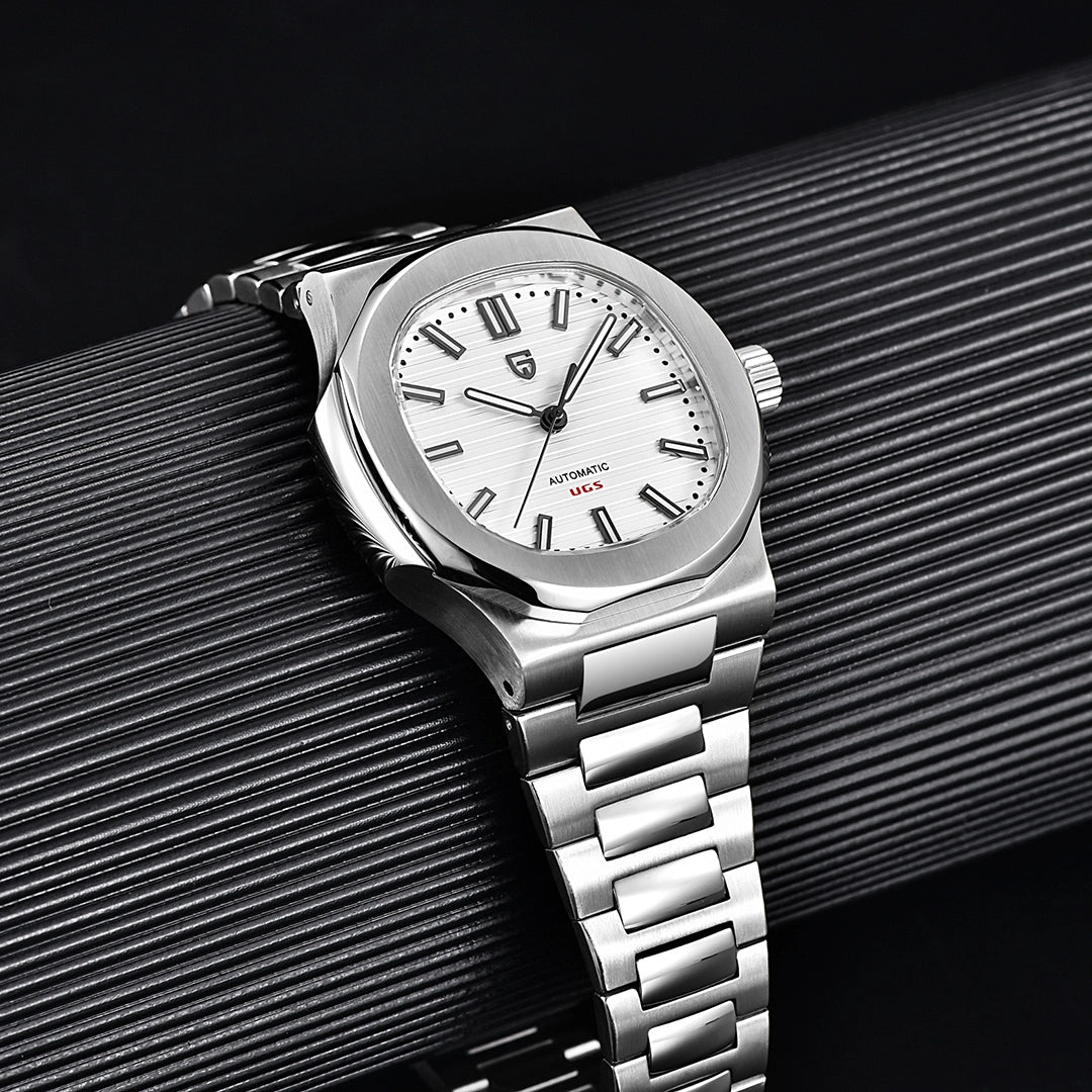Minimalistisk, tidløs og full av karakter – Pagani Design PD-1639 med hvit skive er klokken for deg som ønsker en ren og klassisk stil, uten å gå på kompromiss med ytelse. Det pålitelige Seiko NH35-urverket sørger for presisjon hver eneste dag – helt uten batterier.